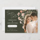 Announce your big day with this romantic Save the Date card featuring blush watercolor wildflowers, elegant modern fonts, and space for your favourite engagement photo. The deep olive green backdrop adds a sophisticated touch, while the whimsical florals bring in a soft, garden vibe — perfect for rustic, outdoor, or fall weddings.. Elegant Green Blush Florals Wedding Photo Save the Date with couple Photo and dark green background. Sweet elegant blush pink and beige watercolor wild flowers, botanicals, and couple's photo. These blush watercolor florals set against a dark green background are perfect for whimsical wildflower weddings.