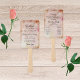 These fans were exactly as pictured. The quality is great. Perfect favor for a wedding!...I will make assembly a little easier by using a hot glue gun and finish them off with a ribbon. Beautifully printed. Crisp and clear text.