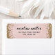 Legible return address label featuring your name in a modern calligraphy font with a textured blush pink background and faux splattered rose gold glitter on the edges.