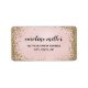 Legible return address label featuring your name in a modern calligraphy font with a textured blush pink background and faux splattered rose gold glitter on the edges.