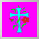 BLUSHING PINK WITH A BLUE CROSS AND RED FLOWER POSTER