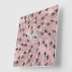Blushing Rose Pink Gold & Black Triangles Pattern Square Wall Clock