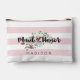Blushing Rose Watercolor Floral Wedding Personalised Maid of Honour Makeup Clutch with pretty rose and peony flowers and fun modern Brush Font. Check my shop to see the entire wedding suite for this design!