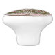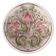 The "Blushing Tulip Elegance Ceramic Knob" is a stunning representation of Art Nouveau design, featuring a central tulip motif surrounded by an intricate array of swirling leaves and blossoms. The soft, blushing pink of the tulip petals contrasts beautifully with the muted green of the foliage, all highlighted by fine gold outlines that add a touch of opulence. The design flows organically, with each element seamlessly intertwining to create a harmonious and visually captivating pattern. The round knob is bordered with a subtle gold rim, enhancing its luxurious appearance and making it a standout piece. Perfect for those who appreciate the blend of functionality and artistry, this ceramic knob brings a timeless elegance to any interior setting.