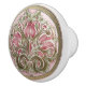 The "Blushing Tulip Elegance Ceramic Knob" is a stunning representation of Art Nouveau design, featuring a central tulip motif surrounded by an intricate array of swirling leaves and blossoms. The soft, blushing pink of the tulip petals contrasts beautifully with the muted green of the foliage, all highlighted by fine gold outlines that add a touch of opulence. The design flows organically, with each element seamlessly intertwining to create a harmonious and visually captivating pattern. The round knob is bordered with a subtle gold rim, enhancing its luxurious appearance and making it a standout piece. Perfect for those who appreciate the blend of functionality and artistry, this ceramic knob brings a timeless elegance to any interior setting.