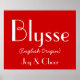 Blysse English Origin With Meaning In Red I Poster