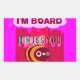 This artwork features a stylised scene with a cartoonish bee prominently displayed in the foreground. Behind the bee, red vertical shapes resemble a wooden fence, creating an enclosed yet whimsical atmosphere. The phrases "I'M BOARD" and "I MISS YOU" are cleverly incorporated into the design, transforming a simple sentiment into a humourous and relatable message.