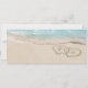 Boarding pass destination wedding invitation featuring a photo of the happy couple, an ocean beach background, two love hearts in the shoreline, your initials, a personalised wedding template, and a rsvp section. There is a hidden plane and boat silhouette, if you would like to use them click 'personalise this template' and then 'customise further'. To make it visible, click on layers and then click on the crossed out eye symbol attached to that layer.
