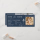 Boarding pass destination wedding invitation featuring a scannable QR code for sharing wedding details, RSVP, itinerary, or wedding website. Designed in an airline boarding pass style, perfect for travel theme and destination weddings. Ideal for beach, resort, tropical, or international celebrations, offering guests a fun and organized way to access important wedding information.