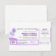 white boarding pass - flight wedding invitation tickets with RSVP together and purple texts, palm trees. I suggest the "Linen" or "Felt" paper for this design. If you need more additional products (like rsvp, reception, letterheads, wedding stickers etc), please contact me. If you like my style, please go to my store and see a lot of unique designs. ..............................................If you need to change only the text please use the "PERSONALIZE IT" window on the right. After you change the information, choose the paper, add a quantity, and that's it - add your product to cart. BUT if you need to change the colours, position, font style, size, to rotate, change the background and more... please push the "CUSTOMIZE" button, and work in "CUSTOMIZE IT" window at the right too. If you have any problems, have a question or need more help please contact me I would be happy to help you. Thank you.
