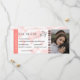 Modern monogram boarding pass wedding ticket with a simple white and salmon background, a photo of the engaged couple, a plane with a loop trail, and a personalised save the date template that is easy to personalise. Don't forget to update the monogram text on the back.