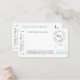 Silver and turquoise blue airline ticket boarding pass escort or place card with space for a custom message and mini dinner menu or custom text information for guests on the back and a faux silver knife and fork icon, a perfect for a destination wedding or aviation theme wedding or party.