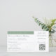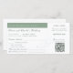 Elegant Boarding Pass Sage Qr Code Wedding Destination Holiday Card in sage colour with RSVP
