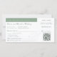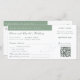 Elegant Boarding Pass Sage Qr Code Wedding Destination Holiday Card in sage colour with RSVP and timeline on the back