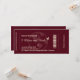 Announce your destination wedding in style with this burgundy and champagne boarding pass save the date card. A unique airline ticket design perfect for fall and winter weddings. Customisable with your names, date, and location.