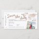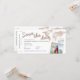 Boarding Pass Save the Date Card with an elegant neutral tan brown watercolor world map, modern boho fonts, and 2 photos with abstract geometric borders around them. You can use this template to create your own unique travel theme destination wedding date announcement, leave the design as-is, or have some fun with DIY design using our layout.