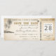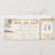 save the date flight boarding pass tickets with beach palms and aeroplane.