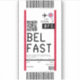 Sticker design based on a boarding pass to Belfast International Airport, Northern Ireland.