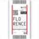 Sticker design based on a boarding pass to Amerigo Vespucci Airport, formerly known as Florence Airport, Peretola, in Tuscany, Italy.