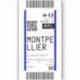 Sticker design based on a boarding pass to Montpellier-Méditerranée Airport, Occitanie region, France.