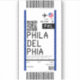 Sticker design based on a boarding pass to Philadelphia, Pennsylvania.