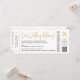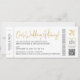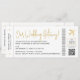 Chic Elegant and Modern Boarding Pass All-In-One Invitation Card for a Destination Wedding anywhere in the world features a luxe faux gold aeroplane with a heart centre logo and authentic details like a bar code, seat assignment, and custom QR Code you can link your own wedding website and online RSVP link. Guest travel information is included on the back so you can send all the details on an efficient all-in-one card design with accommodations and room block details, extra weekend events, travel agent contact info, registry info, and more! Part of an extensive collection of unique and modern travel-themed wedding stationery by Paper Grape Destinations. Contact the designer for coordinating items and ideas.