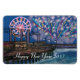 HAPPY NEW YEAR! Graphic painting of colourful fireworks at the boardwalk by the ocean. Commemorate the New Year with this unique magnet and send to someone special.