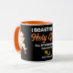 BOAST IN THE HOLY GHOST Personalised Christian Halloween Mug with CUSTOMIZABLE name. The main design says I BOAST IN THE HOLY GHOST ALL OTHER GHOSTS CAN GO TO HELL in white, yellow and orange, with two deleted ghouls either side. At the bottom, there is a CUSTOMIZABLE name, where you can add your name or text. Especially designed for people of faith who want to observe All Saints' Eve without compromise. Make a bold statement while drinking your favourite coffee, without even having to say a word... Choose from a wide selection of Christian Halloween cards, clothing and gifts, designed by Berean Designs.