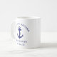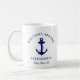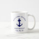 A chic modern nautical-themed mug for your boat that features a navy blue anchor. You can personalise the "Welcome Aboard" text and your boat's name and location in elegant navy blue typography.