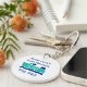 Boat themed custom business key chain, with graphics of a aqua and blue motorboat symbol, on the front. Personalise the text to suit your boating rental business needs.