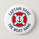 Boat captain name red lifebuoy life saver lifebelt pin back button. Nautical life preserver with ship anchor. Add your own custom name around the safety wheel with rope. Great for boating, sailing, yachting, Birthday, wedding party and more. Create them for sailor, skipper, seaman, crew, guests, friends, family members, fisher, kids etc.