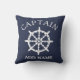 Boat Captain (Personalise Captain's Name) With Ship Steering Wheel Dark Throw Pillow.