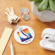 Please your keys with this eye-catching item perfect for vehicle or vessel. Our "Boat Colour Square" Cape Cod keychain features a simple, elegant sailboat design, backed with a graceful gradation of ocean-to-sunset rainbow hues.