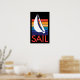 It's a poster. It's a print. It's beach house/office wall art casual meets classic travel poster redux. Show your true colours with this simple, elegant sailboat design, backed by a graceful gradation of ocean-to-sunset rainbow hues.