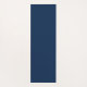 Yoga mat featuring a white, elegant ship's wheel and rope emblem with custom boat name and hailing port (or other custom text) on a dark blue background. At the ends are white stripes.
