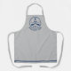 A stylish nautical themed apron with your personalised name, boat name or other desired text. Features a custom designed ship anchor, crossed oars and stars in navy blue on ocean grey. Easily customise the apron colour to match your current decor. Cook, bake and BBQ in Style. Makes a great gift and conversation piece for any occasion.