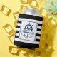 Your Personalised Boat Name (Captain Rank or Custom Text), with a Custom Ships Wheel - Helm, Nautical Anchor, Crossed Oars - Paddles and Stars on a Black and White Striped Can Cooler.