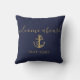 Boat Name Navy Blue And Gold Anchor Welcome Aboard Cushion