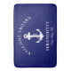 A chic modern nautical-themed bath mat for your boat that features a white illustration of an anchor on a navy blue background. You can personalise the "Welcome Aboard" text and monogram with your boat's name and location in elegant white typography.