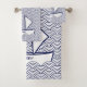 A bath towel set with a boat on a Japanese wave pattern. Customise the towels with your name or your own text.