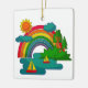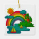 Boat travel landscape under sun clouds and rainbow ceramic ornament