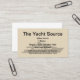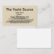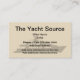Boat theme business card design with image of a yacht lightly printed in the background and a simple layout for a Yacht showroom, boat repair and maintenance, or travel services. Presented on rounded corner business card stock for an upscale look and durability increase.