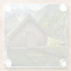 Glass photo coaster with a wooden boathouse cabin inside Obersee lake surrounded by beautiful high Alps mountains in a Bavaria landscape in the south eastern tip of Germany, near the border with Austria.