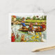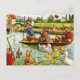 Adorable vintage artwork of bunnies taking a boat ride down a river. Other animals are all around
