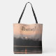 Designer large sunset boating bag with black handle. Personalise the photo, text and size for your great summer holiday tote bag. Great as a custom fabric gift bag, grocery bag, or a travel bag.