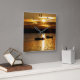 Boats are bathed in the fiery orange, bronze, and gold sunset rays of a brilliant Birch Bay sunset in Washington state.