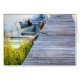A couple of boats are tied to a dock on a Northern Minnesota Lake