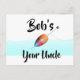 A humourous take on the already humourous British expression, “Bob’s Your Uncle.” In this case, it revolves around the sport of fishing. You have your bobber and line cast into the lake and now simply have to relax until a fish takes the bait. It’s a popular hobby for relaxation in the US as well as the UK. And there you have it!