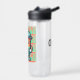 Cute Kawaii bubble teal with cool retro text with a vintage vibe in orange and mint green. Personalised water bottle.