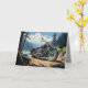 Greeting card with painting of a bobber motorcycle against a mountain river backdrop. Ideal as a birthday, anniversary, Father's Day or retirement card for motorbike enthusiast, but would also work well for other expressions or occasions.